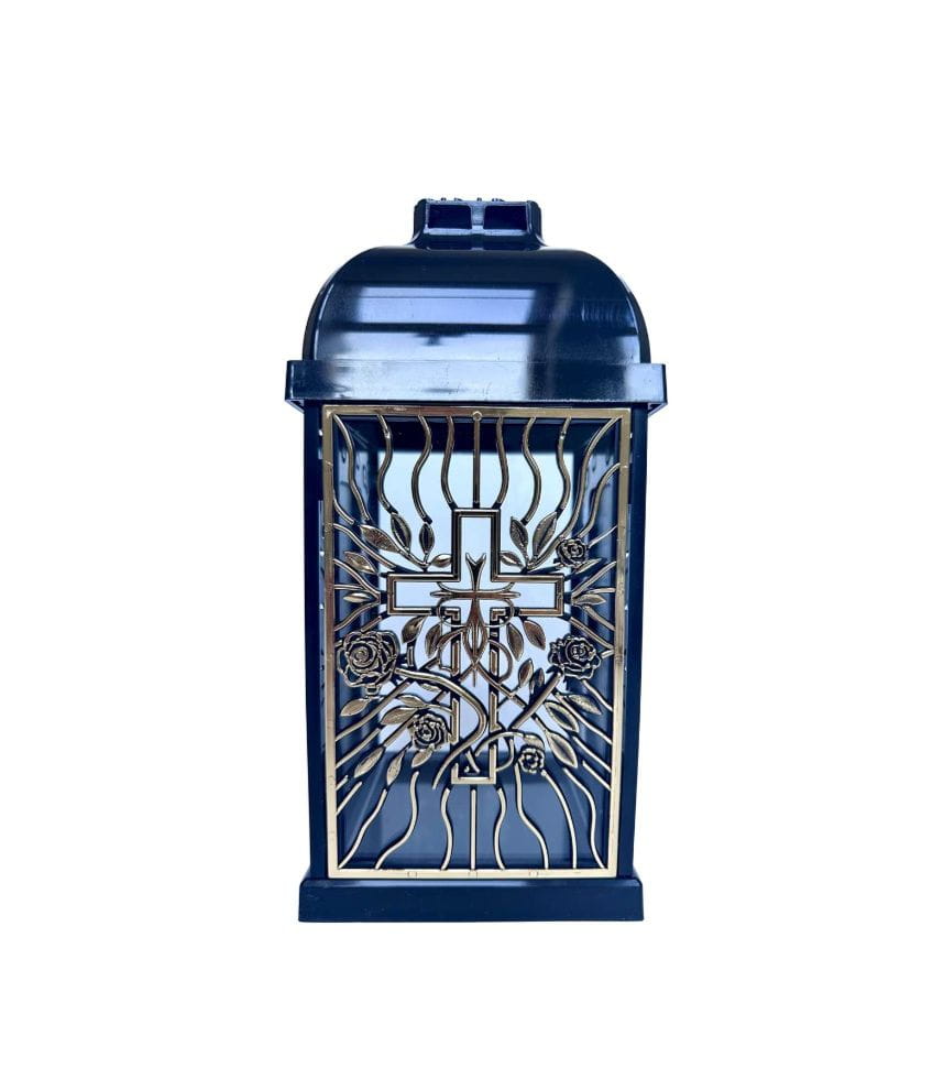 Znicz Fermo Małe Czarno Złota Aplikacja Krzyż + Kwiat Kapliczka